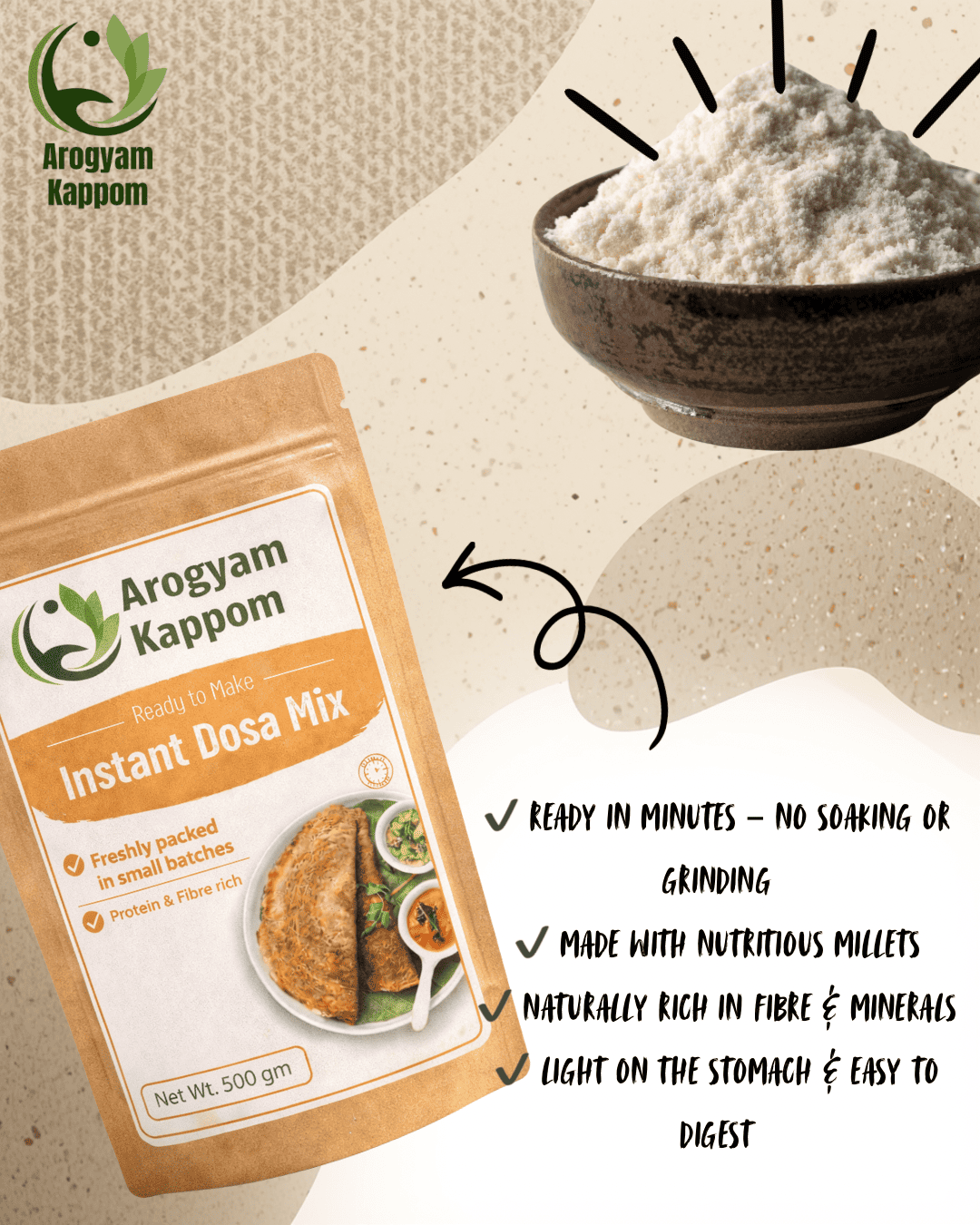 Healthy Barnyard Millet Dosa Mix made with nutritious barnyard millet for crispy and delicious dosas.
